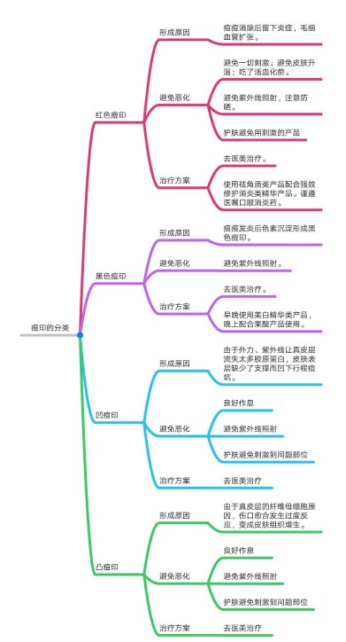 这个问题可以分为三点: 1.搞清楚自己的痘印类型,可以网上找答案,也可以问你信得过的人 2.理清祛痘印思路,可以参考我下面的图片 3.如果以上都觉得很麻烦,可以找专业人士帮你解决